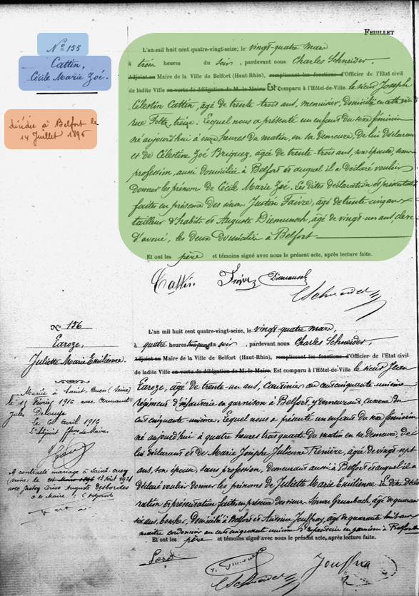 The Belpop project aims to reconstruct the demographic behavior of the population of a mushrooming working-class town during industrialization: Belfort. Belfort is a hapax in the French urban landscape of the 19th century, as the demographic growth of its main working- class district far outstripped that of the most dynamic Parisian suburbs. The underlying hypothesis is that the massive Alsatian migration that followed the 1870-71 conflict, and the concomitant industrialization and militarization of the city, profoundly altered the demographic behavior of the people of Belfort. This makes Belfort an ideal place to study the sexualization of social relations in 19th-century Europe. These relationships will first be understood through the study of out-of-wedlock births, in their socio-cultural and bio-demographic dimensions. In the long term, this project will also enable to answer many other questions related to event history analysis, a method that is currently undergoing major development, thanks to artificial intelligence (AI), and which is profoundly modifying the questions raised by historical demography and social history. The contributions of deep learning make it possible to plan a complete analysis of Belfort’s birth (ECN) and death (ECD) civil registers (1807-1919), thanks to HTR methods applied to these sources (two interdisciplinary computer science-history theses in progress). This project is part of the SOSI CNRS ObHisPop (Observatoire de l’Histoire de la Population française: grandes bases de données et IA), which federates seven laboratories and aims to share the advances of interdisciplinary research in terms of automating the constitution of databases in historical demography. Challenges also include linking (matching individual data) the ECN and ECD databases, and eventually the DMC database (DMC is the city’s main employer of women).”